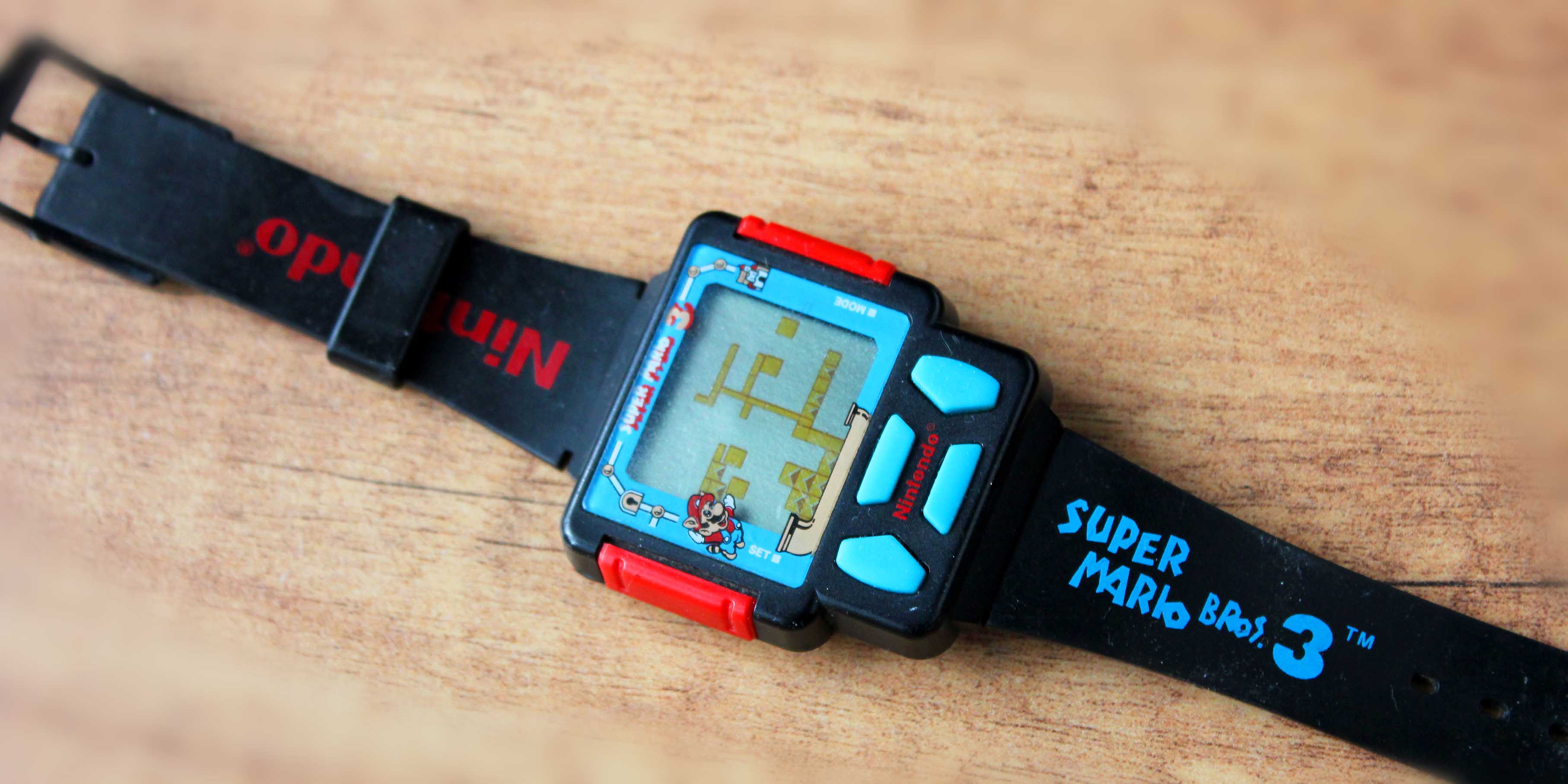 Tien mais j’ai eu une autre montre du plombier ! Jouable en plus ! La montre électronique Super Mario Bros. 3 ! Encore plus mini qu’un mini Game and Watch. En magasin il y avait aussi le modèle Zelda 1, ma mère ne voulais m’en prend qu’un, j’ai beaucoup hésité et pris Mario, l’un des choix les plus difficiles de ma vie.