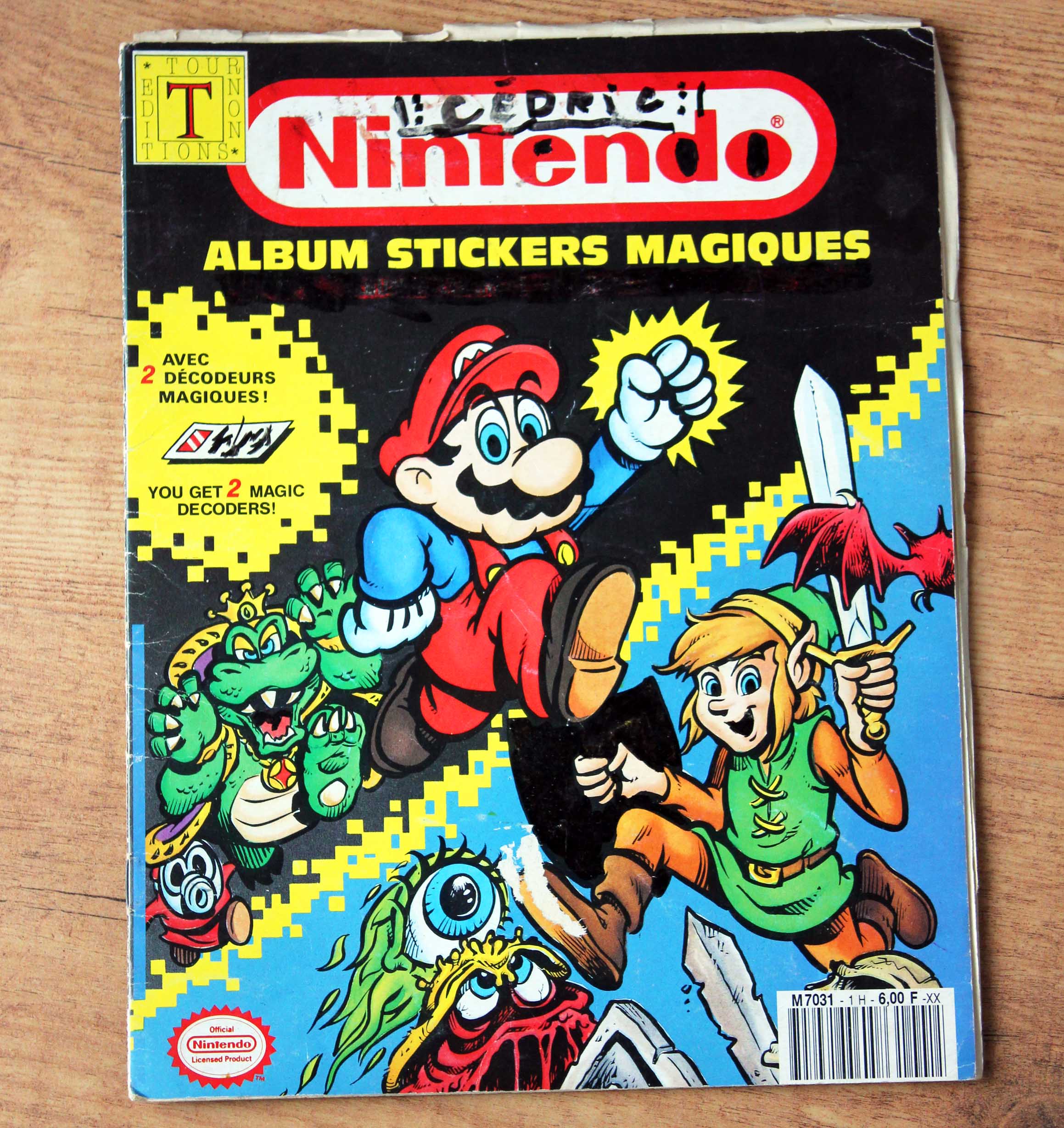 Je suis tombé sur cette copie de livre d’autocollants Panini, par la marque Tournon Editions en 1991, 26 pages avec une partie Mario 1 et 2 et une autre avec Zelda 1 et 2, les deux grosses machines de Nintendo, j’ai eux les 4 jeux dans mon enfance. D’un coup, je me rappel avoir eux les trois premiers numéros d’un magazine de BD sur Mario et Zelda du même éditeur, je ne sais pas si je les ai encore