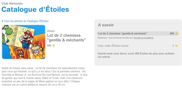 J’avais 1200 étoiles, 1200 points Nintendo quoi. Il n’y avait rien de très intéressant sur le catalogue du site Nintendo pendant un bon moment et en y retournant j’y ai vu de jolies chemises en carton au couleur de Super Mario ! 400 étoiles en plus !