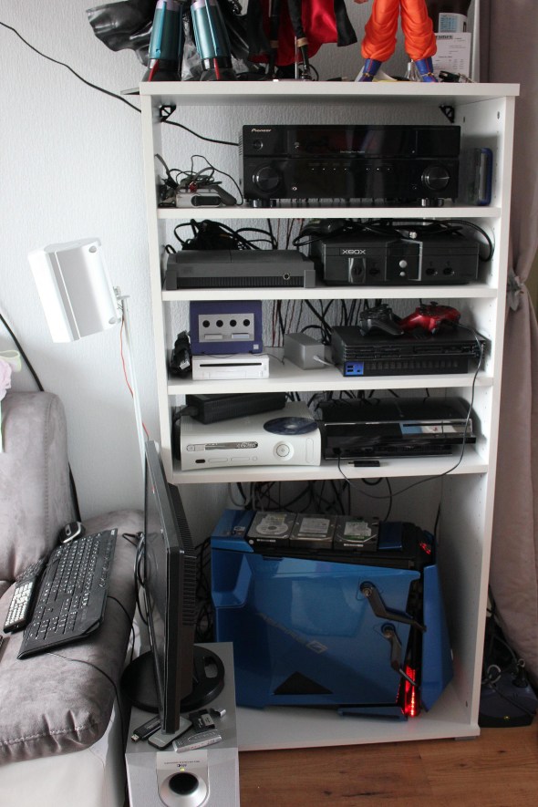 Le coin Hi-Fi avec les dernières consoles, le pc et l’ampli :